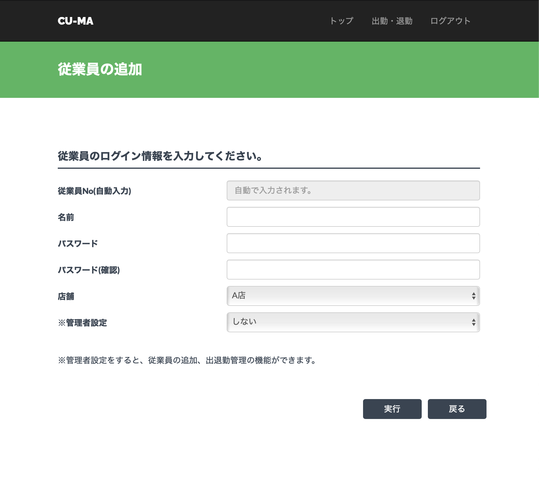 簡単に従業員の追加ができます。名前やパスワードを設定するだけです。